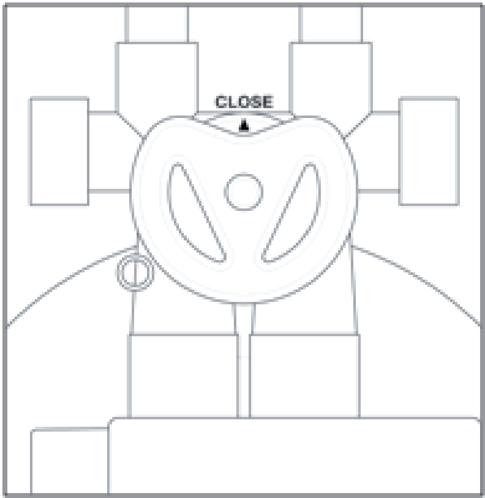 - Fermé (close): Il n’y a pas d’entrée d’eau dans l’adoucisseur. L’eau est complètement coupée. Il n’y a pas d’eau non plus dans la maison.